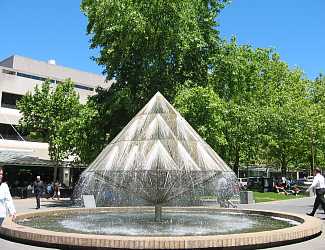 Halblinks hinten das Parlamentsgebäude, rechts die City |