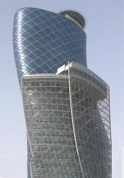 Der Hochhausturm Capital Gate ist als Wahrzeichen der Stadt gedacht.