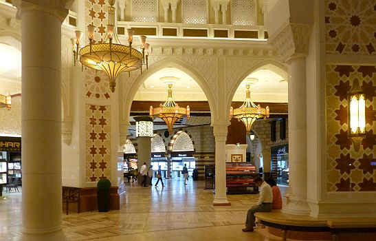 Gehen wir in die Shopping Mall, die sich um einen riesigen Innenhof über vier Etagen erstreckt.