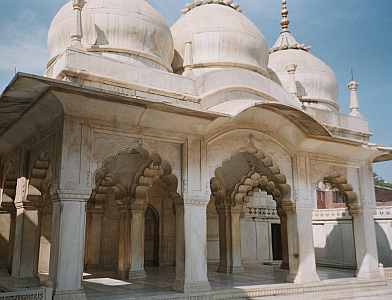 Unter Akbars Enkel Sha Jahan, wurden viele der roten Sandsteinbauten durch Marmorbauten ersetzt.