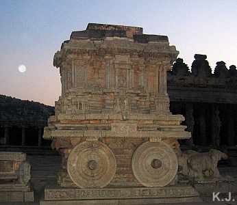 Leider erreichten wir diese schöne Anlage erst bei Mondschein. Bemerkenswert ist hier der steinerne Tempelwagen, dessen Räder sich sogar drehen lassen sollen.