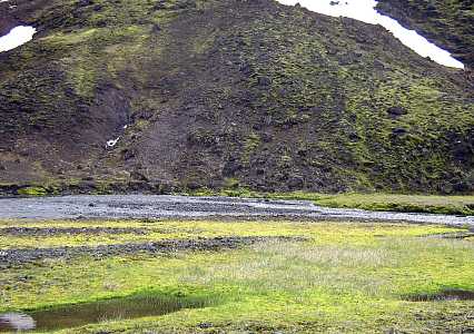 giftgrüne Bewuchs - eine Symbiose aus Algen und Flechten. Ist es trocken, schützen die