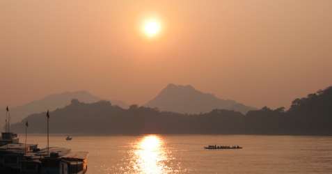 Bevor wir uns in den Besichtigungsstress stürzen, geniessen wir noch die Abendstimmung am Mekong