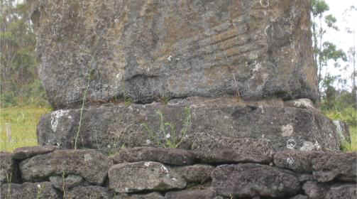 Bei diesem Moai kann man noch eine Hand mit langen Fingernägeln erkennen.
