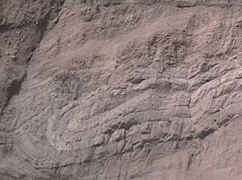 Rechts kann man sehen, wie einst dieses Gebirge aufgefaltet wurde.