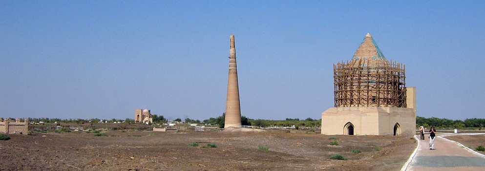 Im Hintergrund das Turabeg-Khanum-Mausoleum. Rechts das Mausoleum des Sultan Tekesh aus vormongolischer Zeit (12. Jahrhundert).