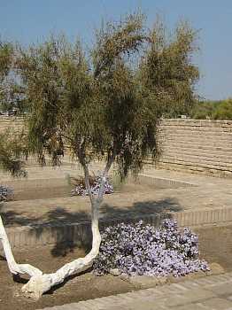 In einer gepflegten Anlage das restaurierte Mausoleum des Saiid Ahmed aus dem Jahr 1307. Die einzigen Blumen auf dem Gelände.