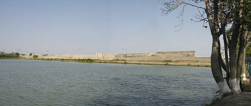 An den Park grenzt ein grosser See mit Ausblick auf die Mauer der Zitadelle.