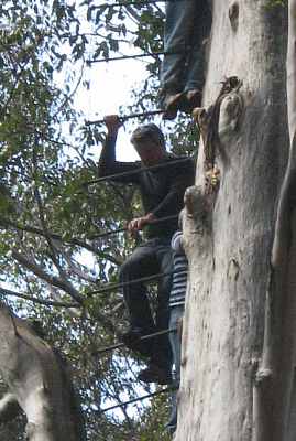 Diese mächtigen Baumriesen - eine Eukalyptusart - können 90 m hoch und 300 Jahre alt werden.